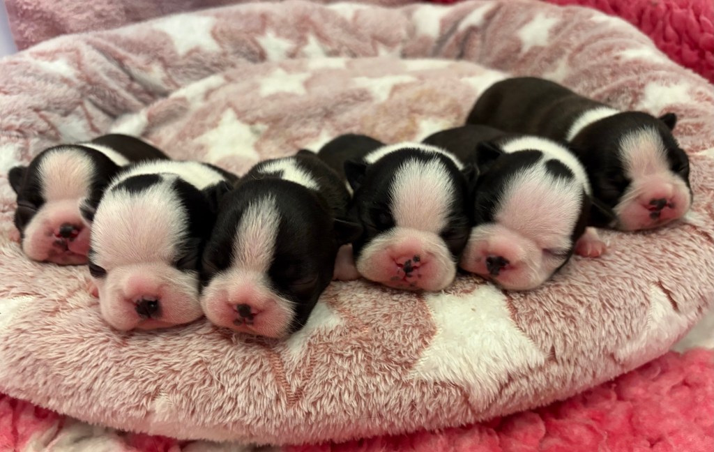VĂ„ra underbara valpar Ă€r nu 1 vecka gamla och de har alla dubblat sina vikter (inte sĂ„ konstigt med den aptiten som de har đ)